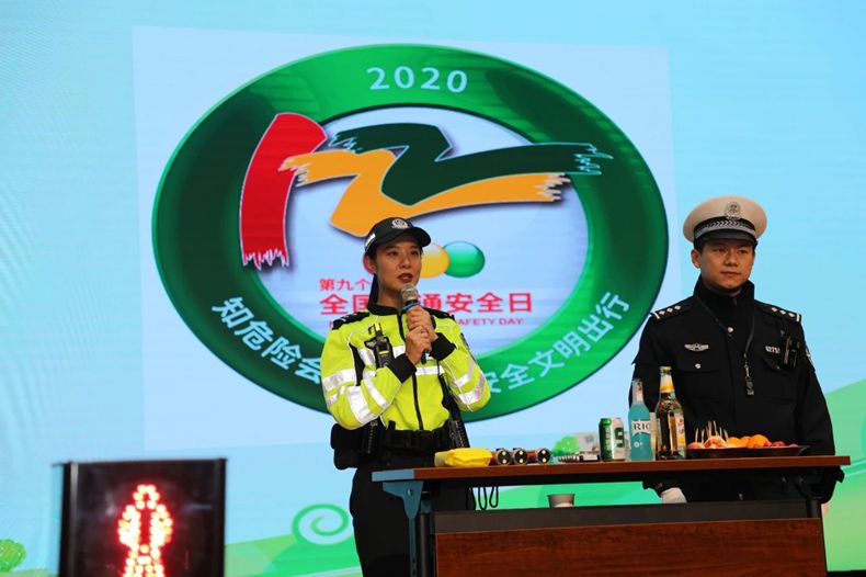 针对“交警叔叔、阿姨的装备都有哪些呢?什么样的食品、饮料中含有酒精?没有佩戴安全头盔会有怎么样的危害?”等一些在场学生的疑问,民警李一丹逐一进行了解答。李警官向孩子们展示了民警警用装备,组织老师、学生现场使用酒精检测仪检测了食物、饮料中含有的酒精成分,模拟了由于没有佩戴头盔而造成的事故伤害。