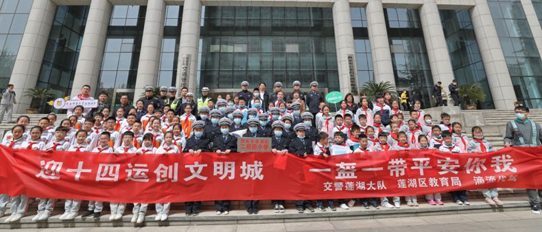 “我承诺,争当‘十四运’交通文明小使者,我做到不闯红灯、文明出行……”“过马路走斑马线,不闯红灯、不翻护栏、不在马路上打闹,乘坐汽车讲文明,不将头手伸出窗外,乘坐电动车戴头盔…… ”3月28日,在西安市曲江第一小学东校区,500多名小学生用稚嫩的声音庄严宣誓,争当交通“文明小使者”。这是在第26个“全国中小学生安全教育日”即将到来之际,曲江大队走进西安市曲江第一小学开展的“迎全运盛会,交通安全进校园”活动。