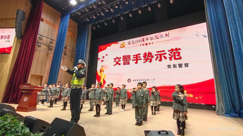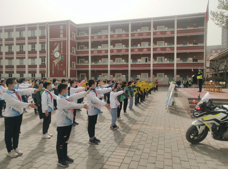 高陵大队联合区教育局,前往西安泾河工业区中心学校通过现场直播开展全国中小学生安全教育日宣传活动。民警通过展示警用装备,演练交通指挥手势等多种方式组织学生学习交通安全知识,与学生积极互动,帮助学生提高安全意识,掌握防护技能,宣传一盔一带、车让人人守规安全文明出行理念。