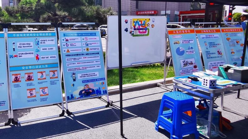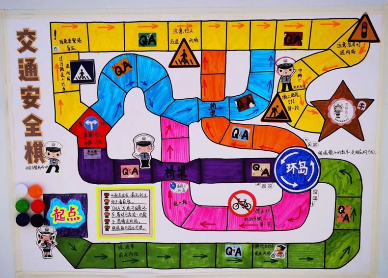 与以往的交通安全宣传不同的是 现场布置了一个由民警手绘的 “交通安全游戏棋”