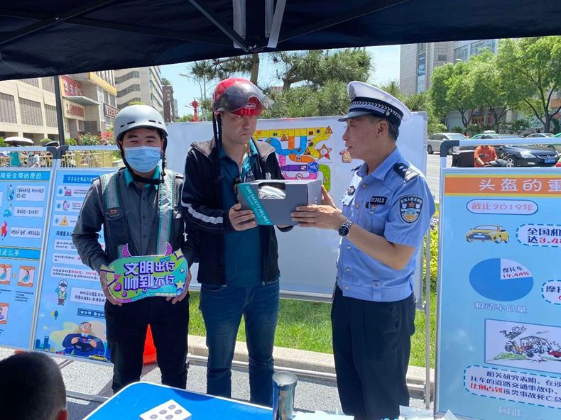 游戏棋设有交通标志认知、 交通规则问答等环节 市民可以通过交通安全游戏 学习交通安全知识 对于游戏的获胜者 民警将会送出头盔作为奖励