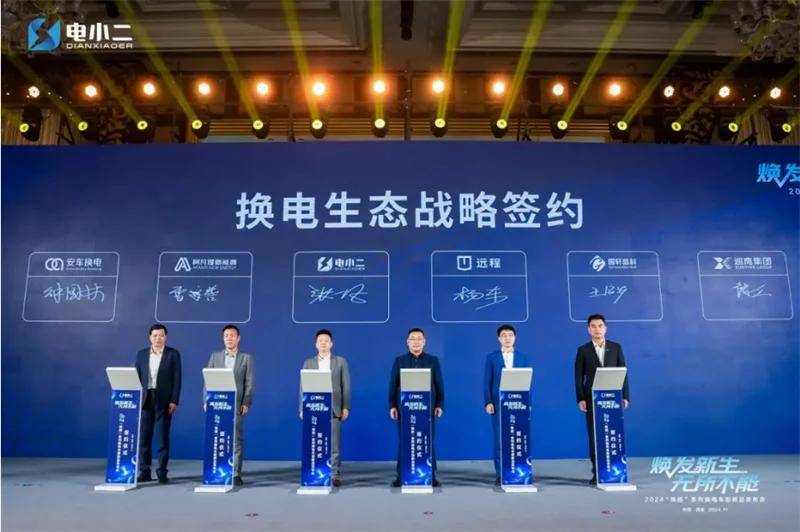 携手共进 合作共赢 同筑新能源商用车发展新未来 发布会现场,电小二新能源科技有限公司与远程新能源商用车集团、国轩高科、巡鹰集团、安车检测、阿凡提新能源集团达成换电生态战略签约。这是一次具有深远意义的强强联合,更是资源共享、优势互补、合作共赢的战略之举,必将为整个行业带来前所未有的变革与发展,为新能源商用车换电事业带来助力和深远的影响。