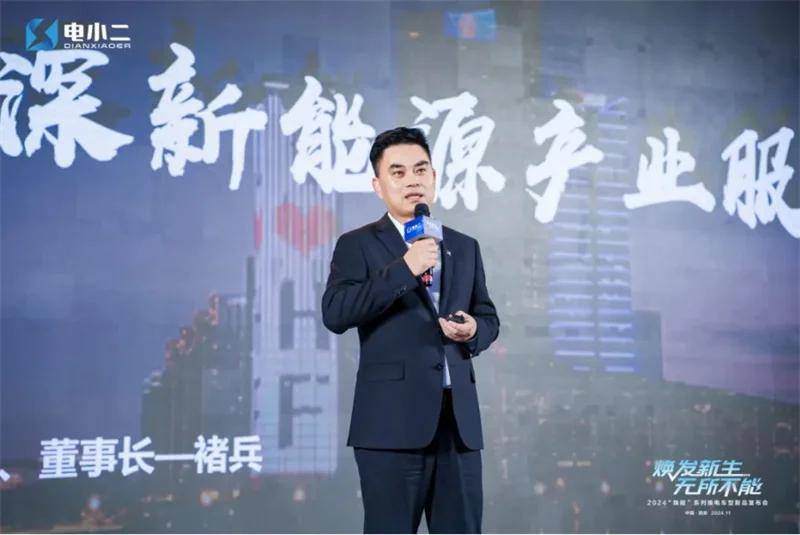(图为安徽巡鹰新能源集团有限公司董事长褚兵致辞) 并且,电小二新能源着眼于未来的发展,已同步开发下一代全新产品,届时将有一个全新的矩阵产品和全新的商业模式面向市场。产品包含了45度电6方微面,60度电7-8方轻客,45度电微卡,60度电小卡,90度电轻卡和120度电轻卡。这样一个产品矩阵已经能够完全满足大部分用户对于车型的需求,也能满足市场端和经销端的需求。