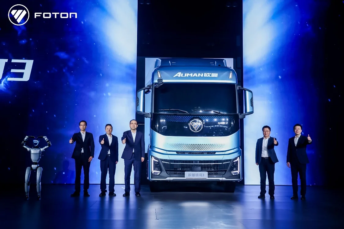 欧曼银河3在延续家族美学基因、以流线型设计诠释高端质感的同时,基于银河智慧架构,从底层正向开发,成功打造超过50项行业领先成果,实现油、电、混动多技术路线的全场景应用。其燃油产品搭载超级动力链5.0,匹配380ps大马力发动机、全新一代变速箱和高效节能驱动桥,在油耗、动力、舒适性上具有显著优势;而纯电产品的核心模块全面自主研发,自主PACK加上灵活的电量组合,可以满足不同运距的需求,搭载自主电驱动桥和自主电控,效率提升30%;混动产品则搭载全新开发的混动专业发动机,匹配机电耦合变速箱和高倍率动力电池,实现热效率从48%提升至50%。此外,在轻量化方面,欧曼银河3运用航母级热成型钢、热固性高强高韧性材料及多项集成化设计,相比行业同配轻200kg。