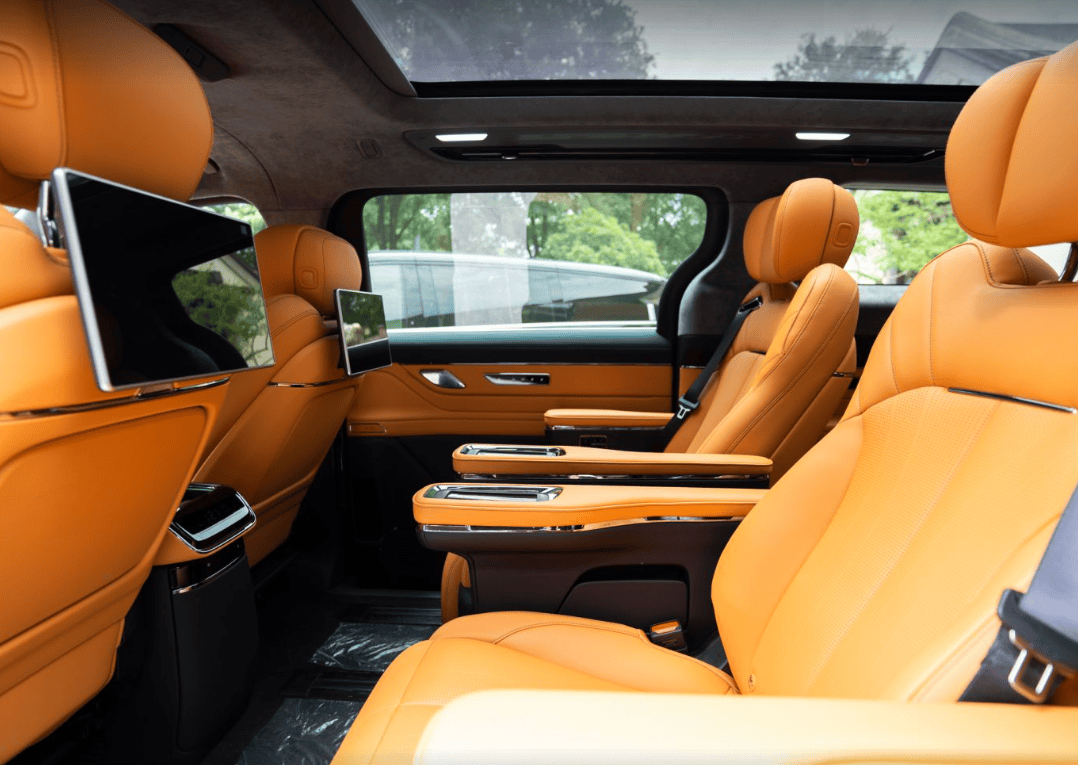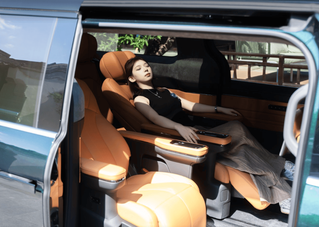 奢享级豪华配置:细节处的极致打磨 翼真L380在豪华配置上尽显匠心。座椅采用超柔苯胺真皮,涂饰厚度比传统工艺减少1/3,每平方米含1000万微孔,透气性卓越;黄金三角支撑体系与10层复合结构(含15mm木桥记忆海绵),搭配三档双区加热、吸风散热及仿生SPA按摩功能,带来“久坐不累”的舒适体验。全车标配2.18米同级最大全景智能调光天幕,支持10档调光与99.99%紫外线隔绝率,配合9屏互联系统与六音区语音交互,打造全场景娱乐空间。健康配置方面,车载智能医生实时监测健康指标,双离子森林氧吧释放10万/cm³负氧离子,水离子除菌率达95%,智能压缩机冰箱支持-6℃~50℃广域温控,构建移动健康座舱。