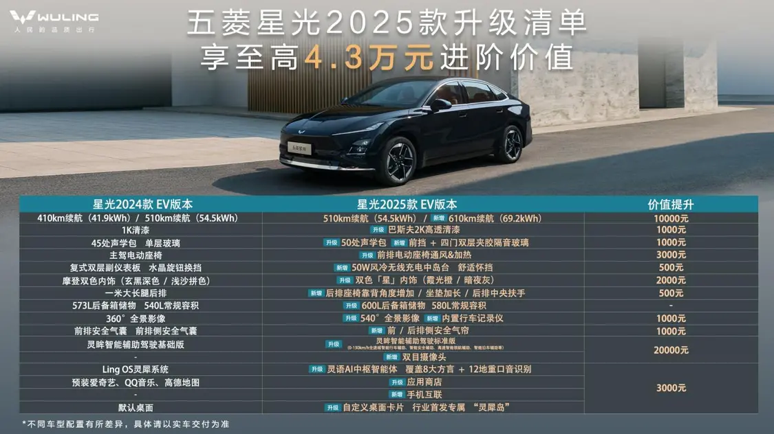 五菱星光2025款正式上市,指导价为7.98-12.58万元