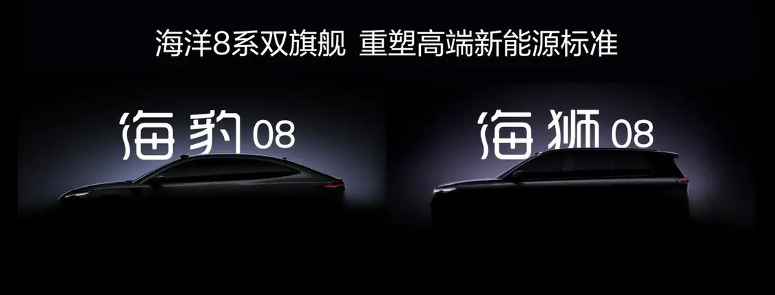 海洋网的成功,源于摒弃传统车企“跟风堆配置”的惯性思维,转而以用户需求为原点,通过精准细分市场构建差异化竞争力。“需求导向-产品布局-技术赋能”的闭环逻辑让海洋网成为新能源爆款制造者。 海洋8系定名公布,明年一季度亮相 活动现场,海洋网正式公布全新高端旗舰——海洋8系定名,分别为:全新大型旗舰轿车“海豹08”与全新大型旗舰SUV“海狮08”。 两款新车造型基于海洋网上海车展首发的Ocean S概念车而来,采用全新一代海洋美学设计,是比亚迪最新技术的集大成者,或将搭载包括比亚迪最新电池技术、最顶尖驾驶辅助系统、最懂人的座舱交互、最极致的操控与最前瞻的设计,满足用户对高端出行的全维度需求,据悉,新车将于2026年第一季度亮相。