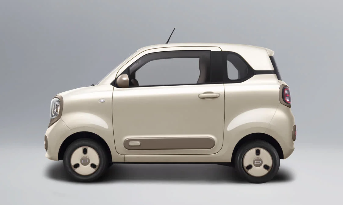 外观方面,新车延续“小方盒子”式车身造型,通过胶囊线条、撞色装饰等细节强化萌趣基因,前脸采用圆形大灯组搭配撞色装饰面板,充电口隐藏于车标盖板内部,兼顾实用性与设计感;车身侧面,奶咖棕车漆与黑色轮眉、B柱形成对比,12英寸轮辋盖采用同色设计,整体视觉更显精致。车尾透明的尾灯组与高位刹车灯形成呼应,后包围撞色装饰条进一步拉伸横向视觉宽度。