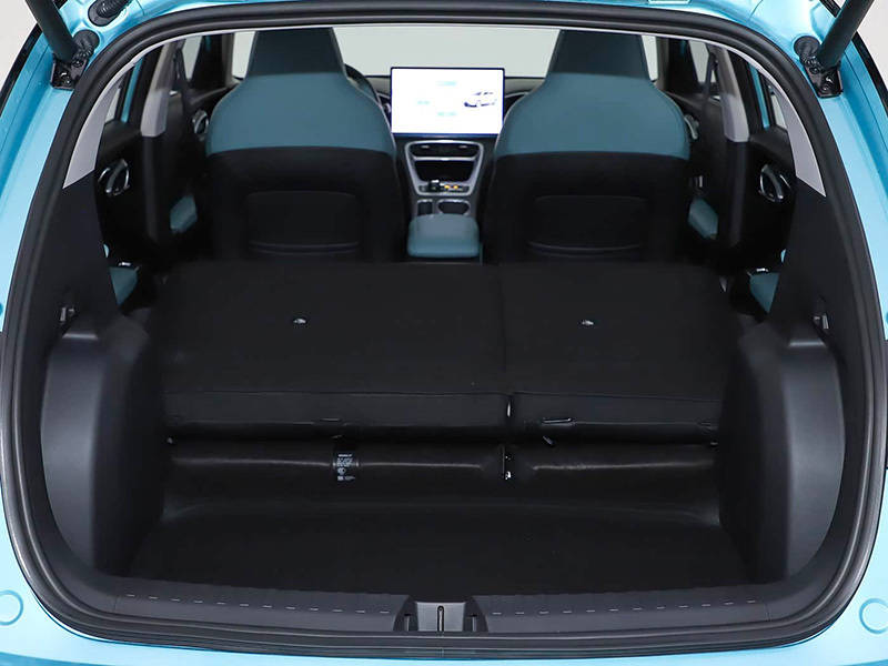 车身侧面的变化并不大,细节上配备了半隐藏式门把手、16英寸全新轮毂(最大尺寸),以及在个性化的C柱上还采用了横向饰条和英文标识来提升质感。整车的长宽高分别为4135mm/1805mm/1570mm,轴距为2650mm,尺寸与比亚迪海豚相当。